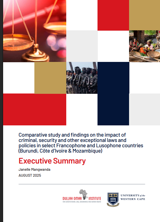 Across Africa, criminal, security and “exceptional” laws often serve purposes far beyond their stated intent; they become instruments that undermine human rights, stifle dissent, and perpetuate systemic injustices. But how do these legal frameworks operate differently across colonial linguistic divides, and what impact do they have on citizens’ fundamental rights? The Dullah Omar Institute’s latest comparative study examines the real-world effects of criminal, security and exceptional laws in three diverse African contexts: Burundi, Côte d’Ivoire, and Mozambique.