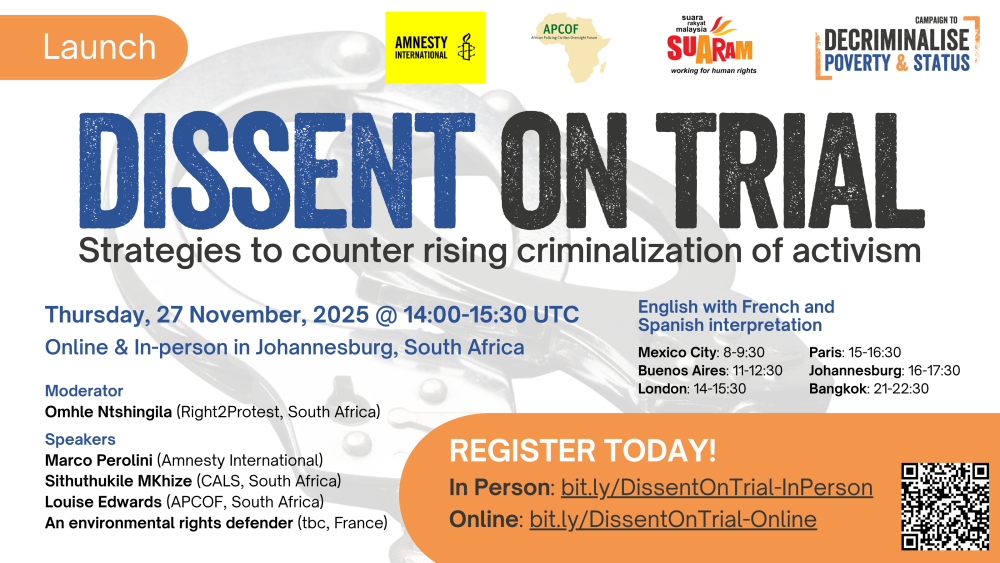 Launch: Dissent on Trial: Strategies to counter rising criminalization of activism
